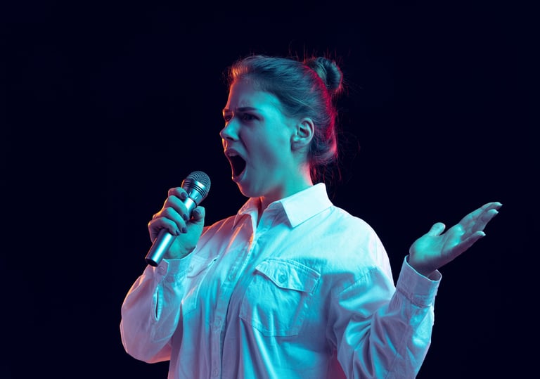 Together, we’ll shape the sessions entirely around you. That will include a mixture of voice and performance coaching, breathwork for stage fright, resonance and projection training, mindset and body language work, rehearsal feedback, or custom warm-ups to keep you flexible and reliable on show days. It's not just your voice that needs warming up - your body and mind need that support, too!